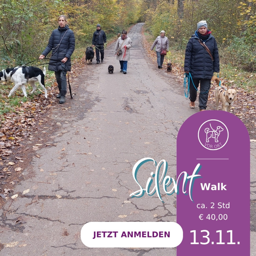 Während dieses besonderen Spaziergangs lässt Du Worte, Technik und Alltag hinter Dir. Du beobachtest, spürst und begleitest Deinen Hund, ganz ohne Worte, nur mit Körpersprache und feinen Signalen. Du wirst überrascht sein, wie viel Dein Hund Dir ohne Worte mitteilt, wenn Du wirklich hinsiehst.